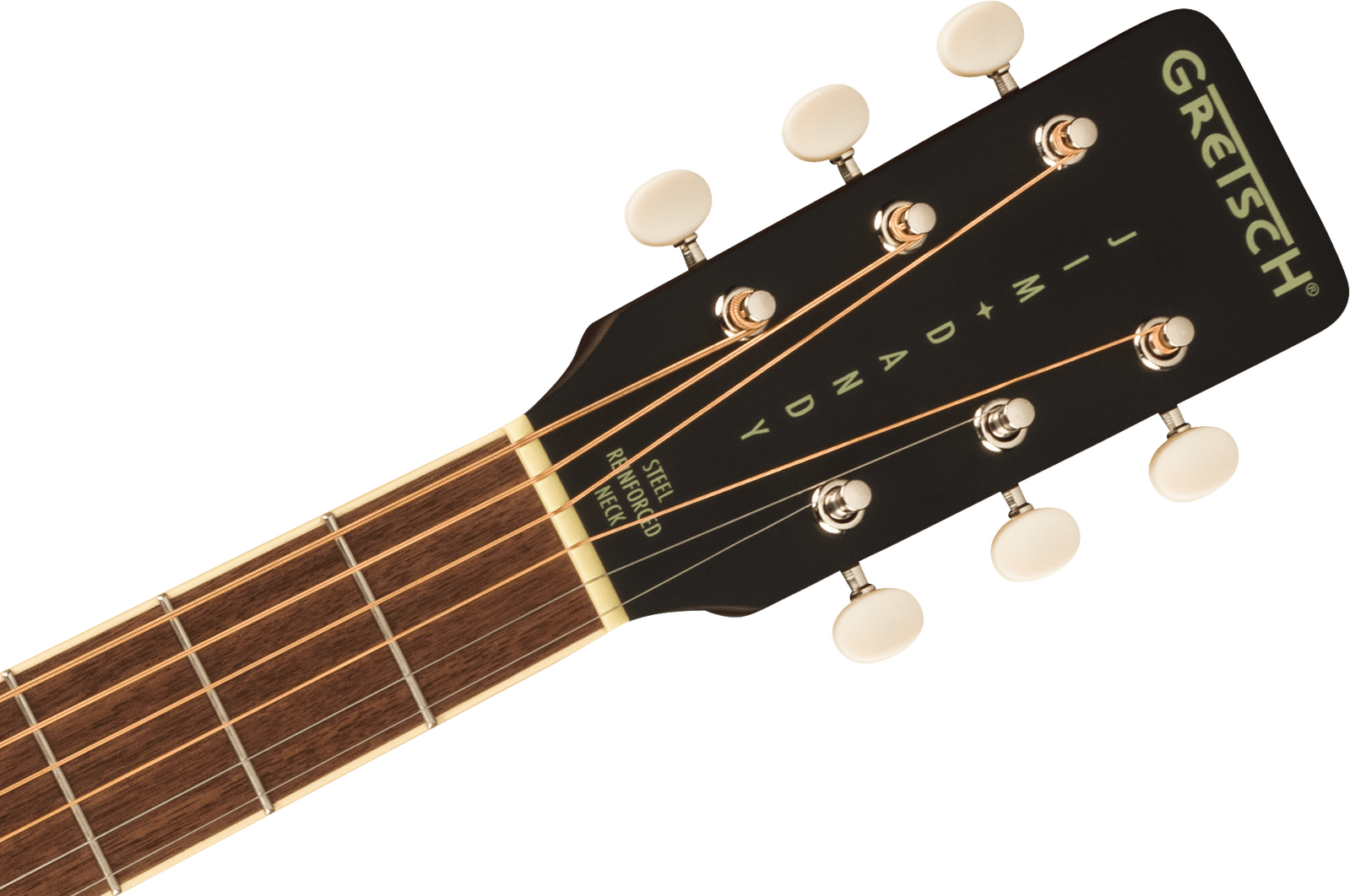 Well suited for everything from bluesy porch pickin’ to speakeasy swingin’, the Gretsch Jim Dandy Dreadnought is a ramblin’ companion for newbies and old-timers alike.