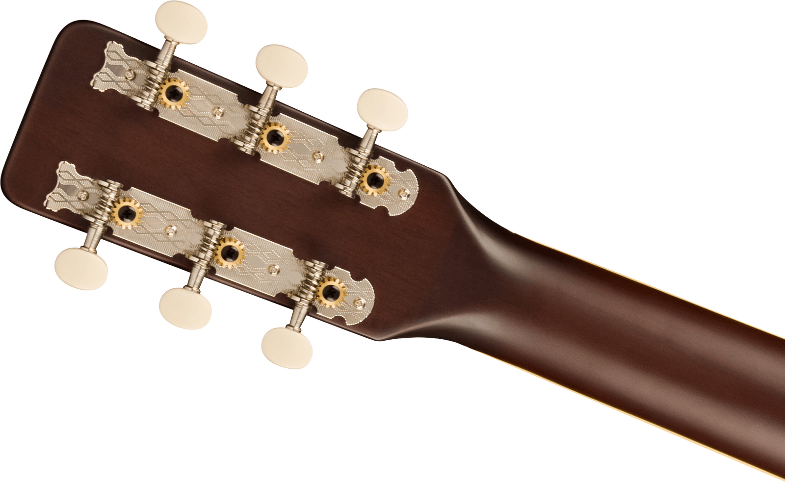 The X-braced body is crafted with select lightweight laminate tonewoods for an optimal balance of woody vintage tone and reliable durability, while the “C”-shape neck presents an inviting feel for hours of old-timey inspiration. Period-correct details such as a vintage-style pinned bridge, “G”-graphic pickguard, painted pinstripe purfling, 3-on-a-plate open-gear tuning machines and oversized dot fingerboard inlays combine for a nostalgic personality destined for any barnburner or jamboree.