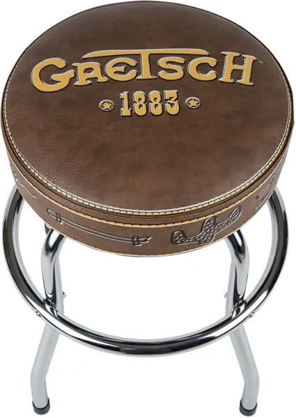 This barstool features the Gretsch 1883 logo on top and iconic Gretsch symbols on the side. A faux leather seat and chrome legs make it perfect for your home, office or fan cave. Available in 24" or 30".
