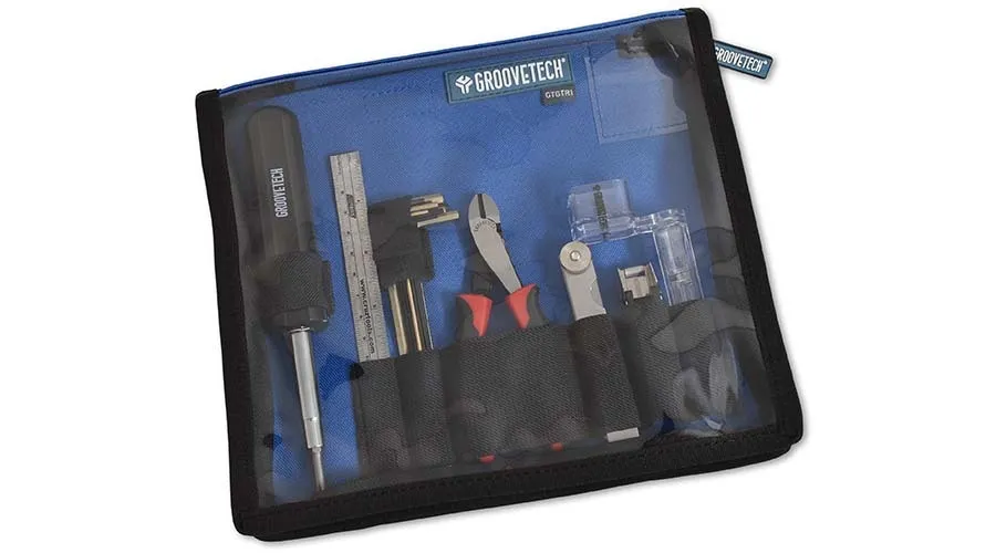 Guitar players may know a little about truss rods and action, but few actually attempt adjustment. That’s a shame, because a good setup will improve your performance. The GrooveTech provides everything you need to work on your guitar, plus an Easy Setup Guide that takes the mystery out of the process. Eleven hex wrenches are color-coded gold for metric and black for inch sizes, and long pattern for easy access. All truss rod sizes are ball end. Also included is a thickness gauge, ruler, capo, GrooveTech String Cutters, string winder, and 6-in-1 screwdriver.