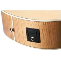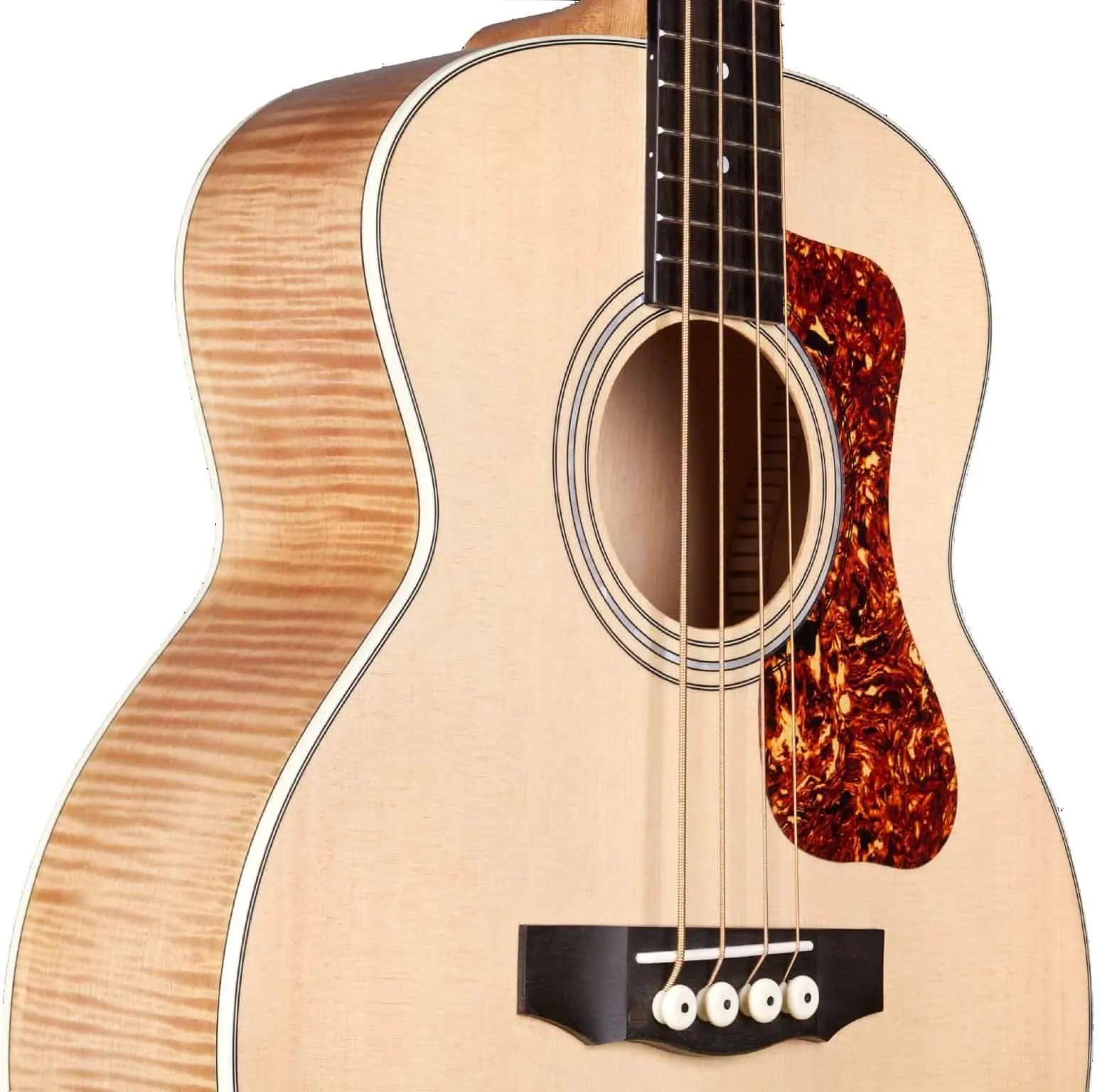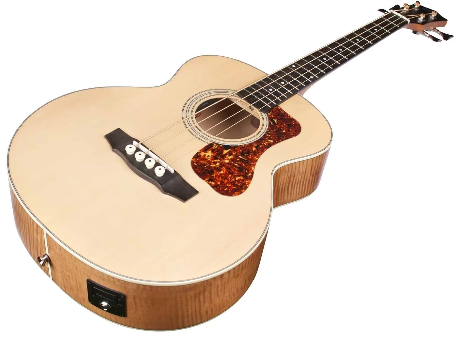 Meet the Jumbo Junior Bass, a compact four-string that checks the boxes for robust acoustic bass tone and portability. We chose a solid Sitka spruce top and arched flamed maple back to mirror the tonewoods that have been used in upright bass construction for centuries, resulting in a clear, tight bass tone that is impressive for its reduced size. The back, sides and neck are finished in a satin antique blonde finish, which adds a rich depth and unique character to the wood’s figure.