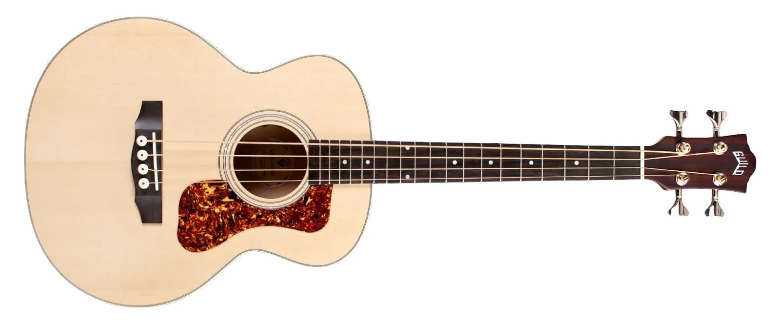 The Jumbo Junior Bass’s deep voice can be amplified or recorded using its onboard Guild AP-1 Active Acoustic Piezo pickup system with built in volume and tone controls. Other standout features include an ebony fingerboard and bridge, bone nut and saddle, mother-of-pearl rosette and Guild peak headstock logo, tortoiseshell pickguard, and nylon-core phosphor bronze strings. A Guild deluxe padded gig bag is included.