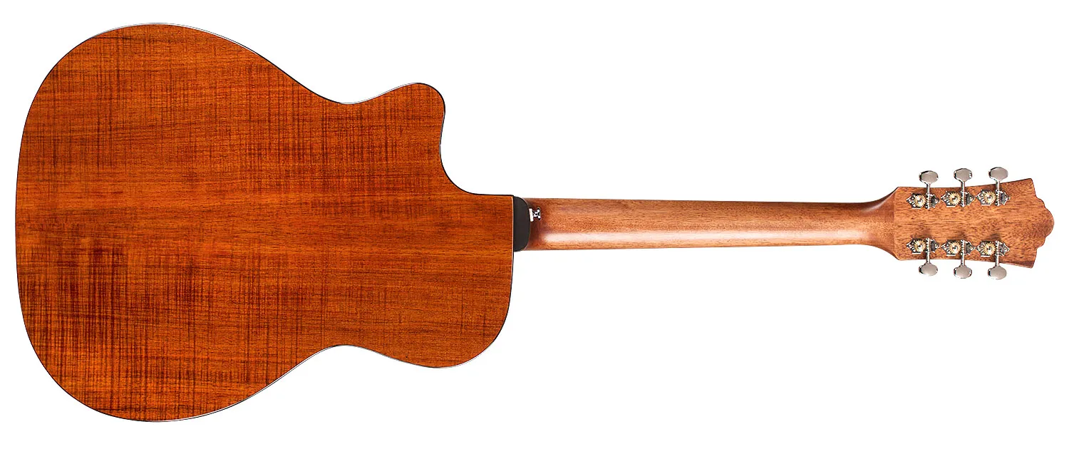 A premium, orchestra-sized guitar with stage presence and studio-quality sound. Featuring stunning Australian Blackwood construction, the OM-260CE Deluxe Blackwood brings depth and deep spectacular figuring to the Guild line. This distinctive tone wood gives the OM-260CE Deluxe a warm and powerful voice. Black binding and 5-Ply purfling paired with the Blackwood top, back, and sides delivers a sophisticated and modern look. The OM-260CE Deluxe Blackwood pairs arched back construction with an astounding tone wood creating the perfect guitar for players searching for a unique look and sound. Premium appointments include Fishman GT-1 Pickup with volume and tone controls, a mother-of-pearl rosette and logo, Pau Ferro fingerboard and bridge, and Guild Vintage 18 tuners with 18:1 gear ratio. Available in a gloss natural finish