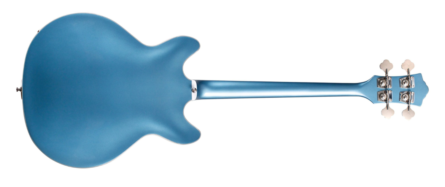 An iconic shape at an affordable price, Guild’s Starfire I Bass is a modern adaptation of the traditional Starfire Bass platform, exemplifying the features needed on a modern Hollowbody bass. Featuring a slimmed down, 2.4” body thickness, inward-shifted neck, short 30 ¾” scale length, and a 1 ½” nut width, the Starfire I Bass is a compact and accessible option for younger players, or those who want more freedom on stage. Stable tuning and easy adjustability are provided by the Tune-o-matic bass bridge, and the harp tailpiece adds a touch of Guild’s classic aesthetic, likening the bass to its upright ancestors. Guild’s own BC-1 BiCoil pickups adorn the bass, complete with hum resistant nickel covers and Alnico 5 magnet construction. Combined with the woody nature of semi-hollowbody tone and the volume and tone control, these pickups allow the player to dial in anything from modern, cutting bass tones to wooly, round, vintage tones. Pull up on the Volume Knob to reveal the push-pull vintage switch—a feature that adds presence with rolled down low frequencies, reminiscent of the parallel pickup configuration on vintage Hollowbody basses. Available with maple top, back, and sides in Pelham Blue and Vintage Walnut, and with Mahogany top, back, and sides in Cherry Red. Left-handed version also available in Cherry Red. All in a perfectly glossed polyurethane finish.