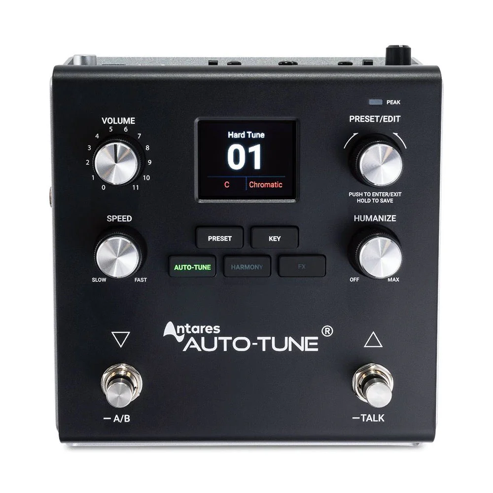 The HeadRush VX5 is a modern and intuitive vocal effects pedal featuring the industrystandard Antares AutoTune® technology. Designed for real-world performance settings and real-time vocal processing, the VX5 gives vocalists of all genres and styles confidence and creative control with access to a playground of pro-level audio effects in a compact package. At the heart of the VX5 is the iconic AutoTune® algorithm, used and popularized by some of the most important and beloved artists of our time. This essential music production software has redefined what it means to be a modern vocalist, expanding the scope of effects available to artists whose instrument of choice is the human voice. The VX5 delivers that technology in a tactile format for the everyday musician or producer. Dial in subtle pitch correction or experience the unmistakable sound of AutoTune® at its fullest via the pedal’s dedicated Retune Speed and Humanize knobs. Beyond pitch correction, the VX5 also features studio-quality reverb, delay, chorus, compression, and flavor effects, as well as an intelligent harmony feature that can generate vocal harmonies based on chords from a connected guitar or keyboard.  The VX5’s clearly labeled layout and color display with simple preset up/down navigation make it easy to program presets for every song in a set or adjust parameters on the fly. Use the pedal’s two footswitches to seamlessly change presets, or initiate Talk Mode for convenient control over effects during a live performance. Artists can easily automate preset changes using their playback rig with MIDI via USB. With up to 250 presets available to create and explore, and this unique pedal’s ability to function as a class-compliant USB audio interface for recording ideas with ease, the VX5 is the ultimate vocal effects processor for both stage and studio use.
