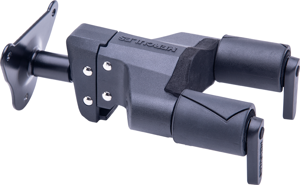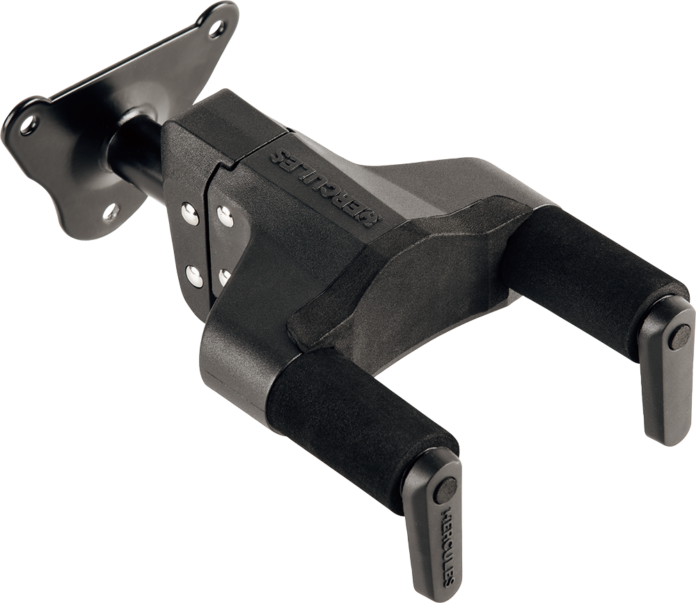 The HERCULES Auto-Swivel Yoke Hanger GSP39WB PLUS rotates automatically to accommodate different shaped guitars or basses vertically and safely. It features a screw-in standard wall mounting system.