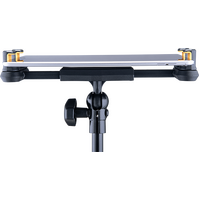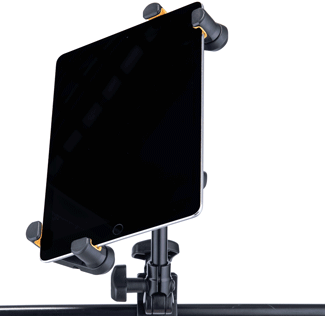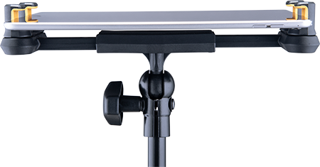 • Attaches to a desk, round and square tubes like keyboard stands, microphone stands or music stands.