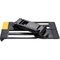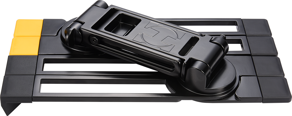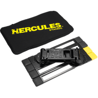 The HERCULES Laptop Stand DG400BB features a one-piece folding design, has multiple height and angle adjustments, and includes a carry bag.