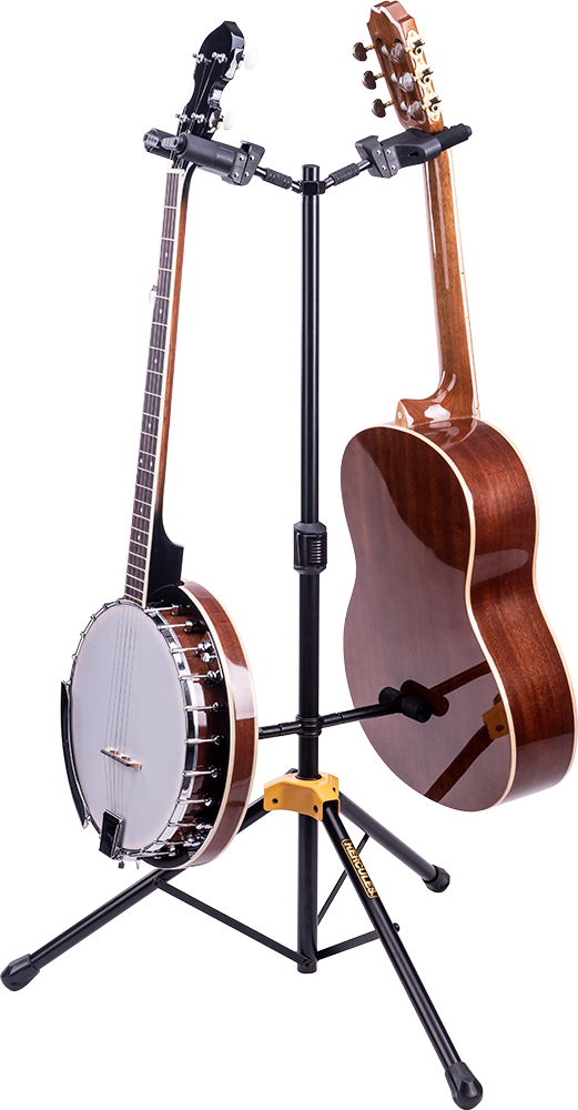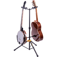 The HERCULES Double Guitar Stand GS422B PLUS accommodates two instruments and features the foldable Auto Grip System (AGS) yokes, Instant Height Adjustment Clutch, Specially Formulated Foam (SFF) padding contacts and the adjustable back rests.