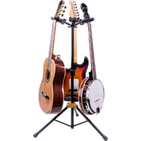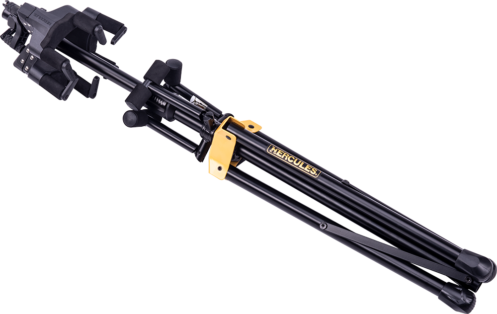 The HERCULES Triple Guitar Stand GS432B PLUS accommodates three instruments and features the foldable Auto Grip System (AGS) yokes, Instant Height Adjustment Clutch, Specially Formulated Foam (SFF) padding contacts and the adjustable back rests.
