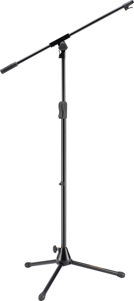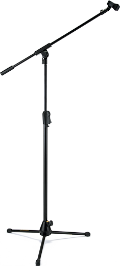 The HERCULES Tripod Base Boom Mic stand MS531B features the EZ Mic Clip, the Quik-N-EZ Boom Retainer, and the EZ Clutch.