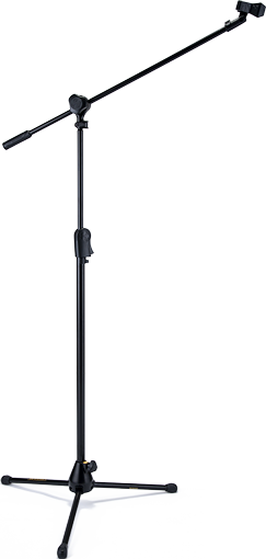 The HERCULES Tripod Base Boom Mic stand MS532B features the EZ Mic Clip, the 2-in-1 Boom Clamp, and the EZ Clutch.