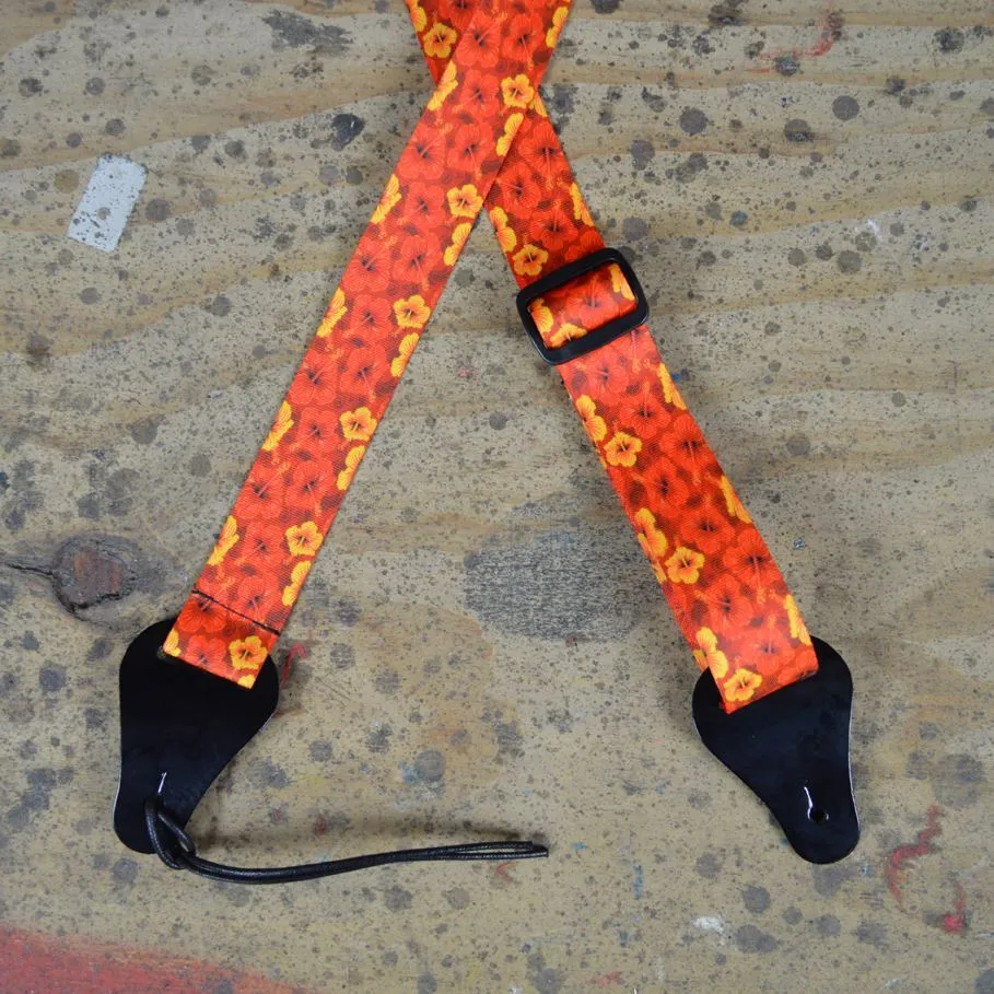 Hibiscus Red Printed Webbing Ukulele Strap