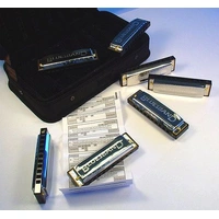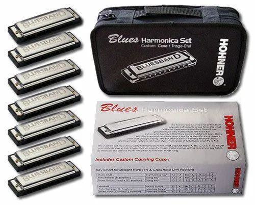 Blues Harmonica SetDiatonic harmonica players usually need harps in a variety of keys to be able to play different musical pieces. This harmonica set includes all the keys most commonly needed in blues harmonica.Features Injection moulded black plastic comb 0.9 mm brass reed plates 20 brass reeds Stainless steel covers Available in C-major