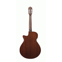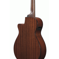 Okoume back and sides - The Okoume back and sides generate a woody, warm tone when the guitar is played softly or finger-picked and provide punchy high-mids with a clear projection when strummed.