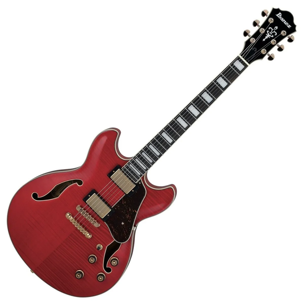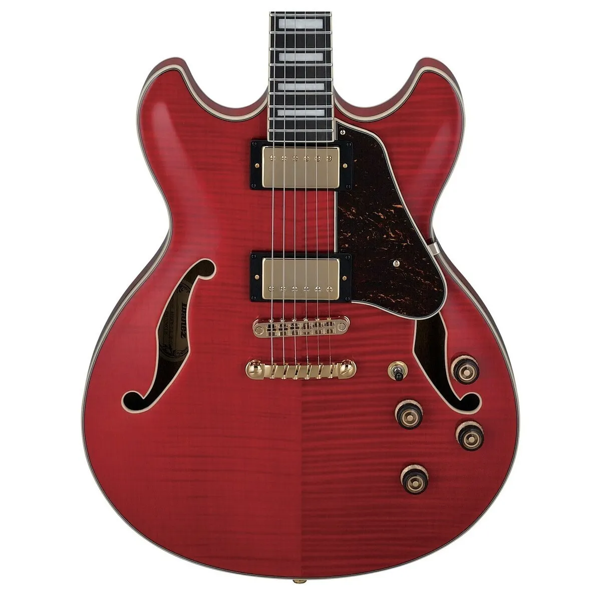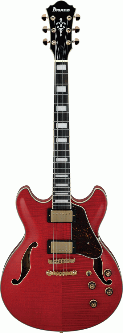 The Ibanez AS93FM Artcore Semi-Hollow Electric Guitar in Transparent Cherry Red is a semi-acoustic guitar built to tackle just about any genre of music you throw at it. The pickups are mounted directly to the center block for increased sustain.