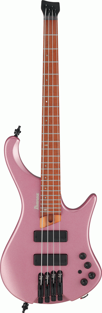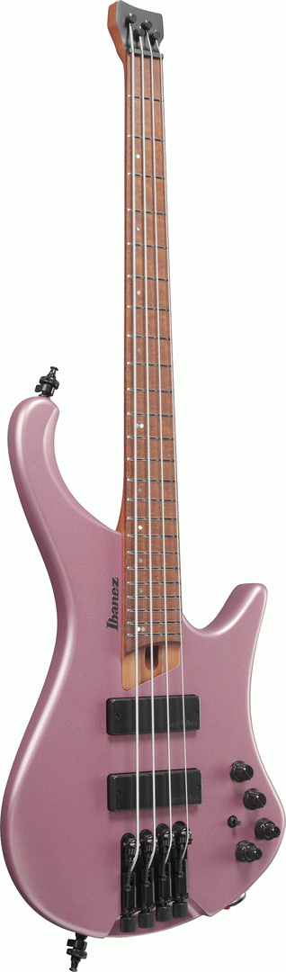 The Ibanez EHB1000S PMM Electric Bass in Pink Gold Metallic Matte - The EHB’s headless construction, contoured body, ergonomic design, and chambered body make for a lightweight and comfortable instrument that’s excellent for long sets or practice sessions. This series also sports a combination of high-quality tone woods and versatile electronics, resulting in a cutting-edge, ultra-modern bass, capable of cutting though the complex landscape of tones required for today’s bassist.