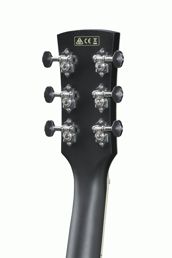 Okoume back and sides - The Okoume back and sides generate a woody, warm tone when the guitar is played softly or finger-picked and provide punchy high-mids with a clear projection when strummed.