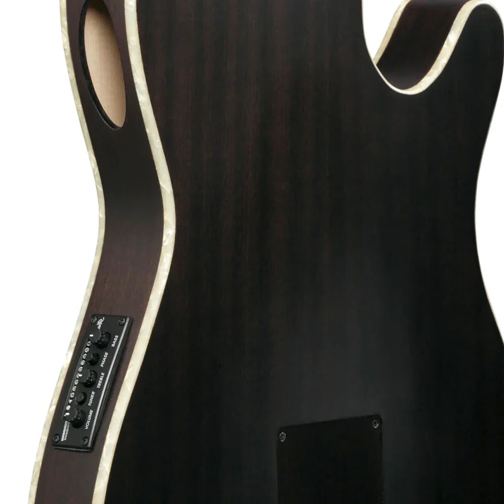 Modified FR hollow body w/ Fan bracing - Its thin, compact body and superior high fret access contribute to the superb playability of this guitar. It has less feedback as there’s no sound hole on the body top. Fan bracing, which is commonly used for classical guitars, allows this guitar to have a warm and natural nylon string sound.