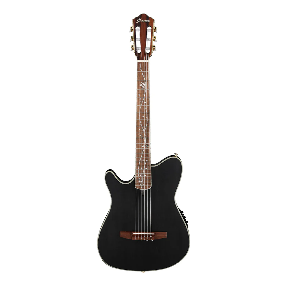 As an artist, Tim Henson is always trying to update, invigorate and reinvent his band’s image. He has taken that same approach with the TOD10N, his signature nylon string electric guitar that is based on the Ibanez FRH model. The TOD’s most striking aesthetic feature may be the fingerboard inlay design, which Tim has dubbed as the “Tree of Death”. The name and the design are both nods to the iconic Ibanez “Tree of Life” inlay design, but with a twist.