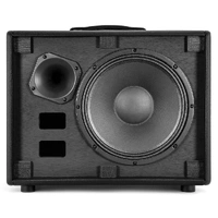• Innovative 2-Way acoustic design, featuring a high-wattage 12″ guitar speaker from Celestion for low and mid frequencies, makes this cab sound instantly familiar to guitarists, unlike the lifeless sound of a typical PA woofer.
