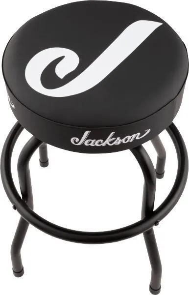 Ideal for any recording studio or game room, this Matte Black barstool has a heavily-padded swivel seat for extended comfort and features the Jackson® "J" logo in White on the top with four classic Jackson® logos also around its perimeter. Available in both 24" and 30" heights, it has matching Matte Black finished legs.
