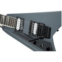 Other great features include dual Jackson high-output humbucking pickups with ceramic magnets, single volume and tone controls, three-way toggle switch, a Jackson-branded Floyd Rose® double-locking tremolo bridge and sealed die-cast tuners.