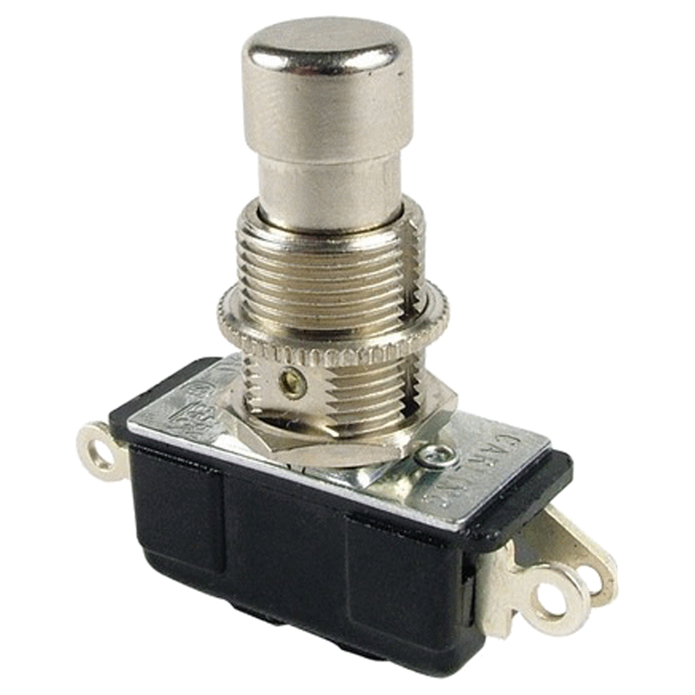 Toe switch found in many type of foot switches, including the Dunlop® Crybaby and Vox® Wah pedals.  Made by Carling®.  Also found in the vintage versions of the MXR® Phase 90 and Phase 45.  Has 3 electrical terminals (single pole, double throw).  Solder lugs for wire.    NOT for the latest version Crybaby Version F (GCB-095F)