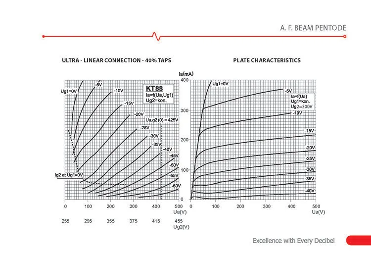 A.F. BEAM PENTODE - KT88 is a beam output pentode with an octal base and power of 42W. Very powerful, with strong bass and very bright highs. It can also be used in 6550 amplifiers.