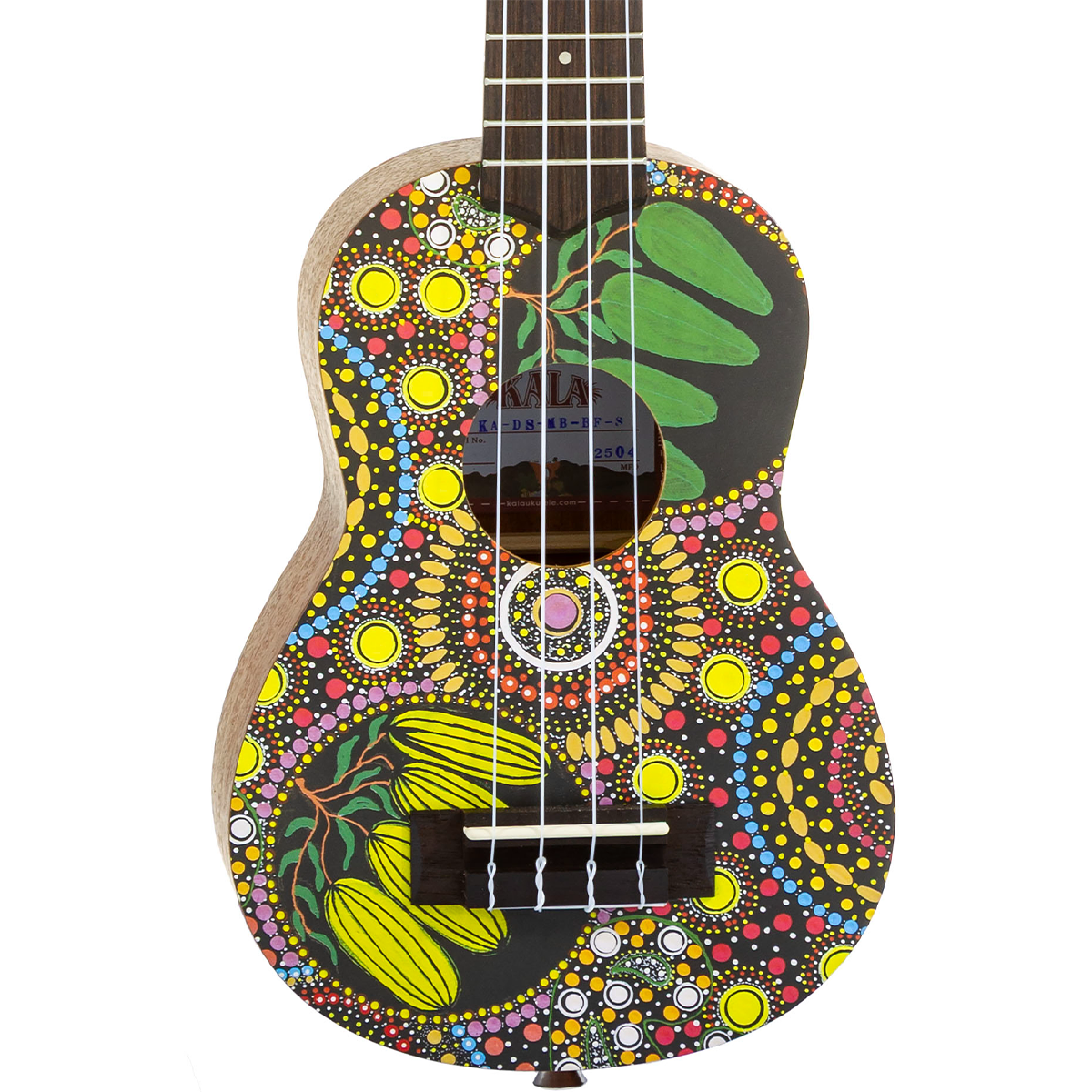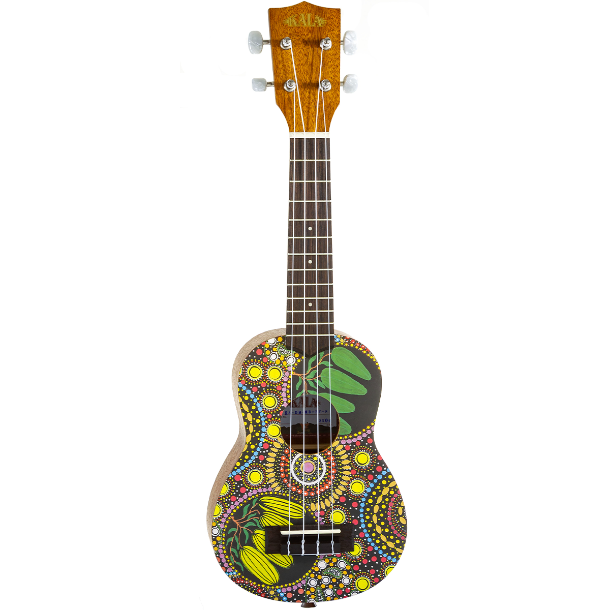 The Kala Soprano Ukulele – Desert StoryLines “Bushfoods” by Margaret Bloomfield beautifully combines the craftsmanship of Kala with the rich storytelling tradition of Aboriginal art. Created in collaboration with Keringke Arts in Santa Teresa, Northern Territory, this ukulele celebrates the vibrant culture and artistry of Central Australia. Each instrument features genuine Aboriginal artwork by Margaret Bloomfield, depicting desert plants and bushfoods found in her Country.