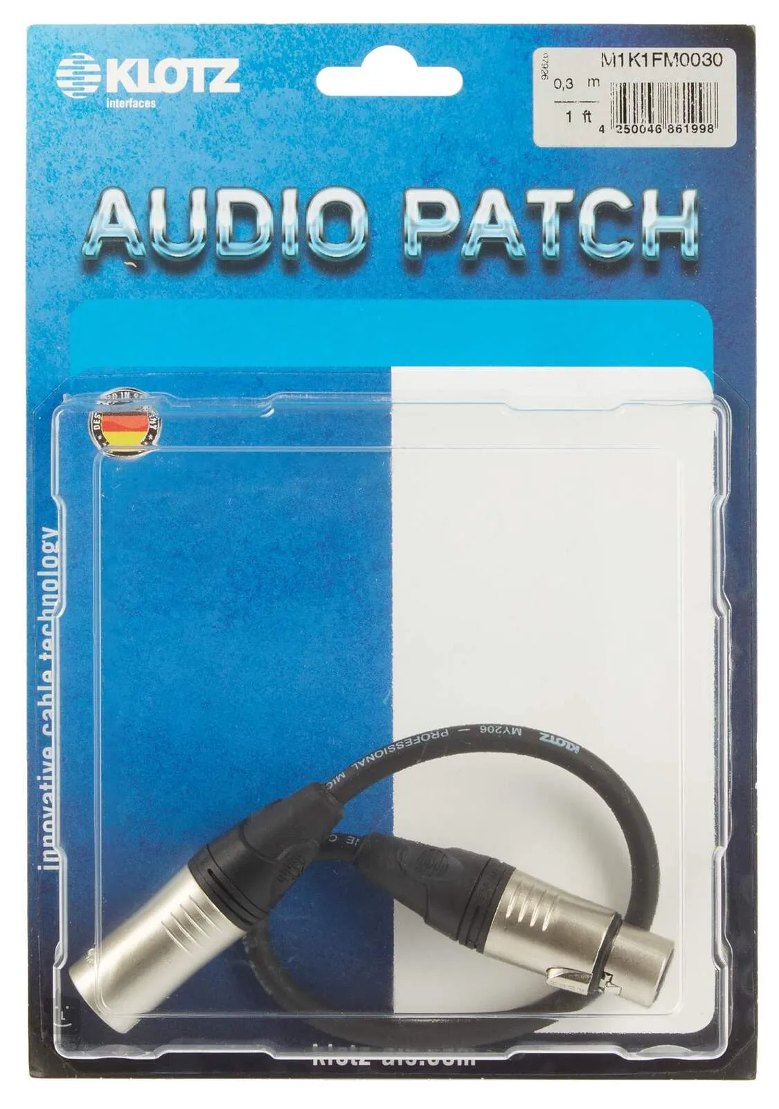 Klotz M1K1FM0030 1" Mic Patch Cable