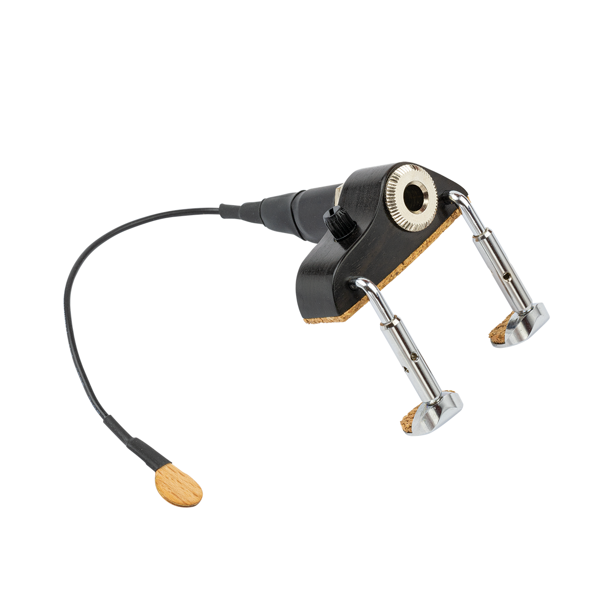 Cork-lined, fully adjustable barrel clamps keep the unit safe and stable while attached to the instrument.