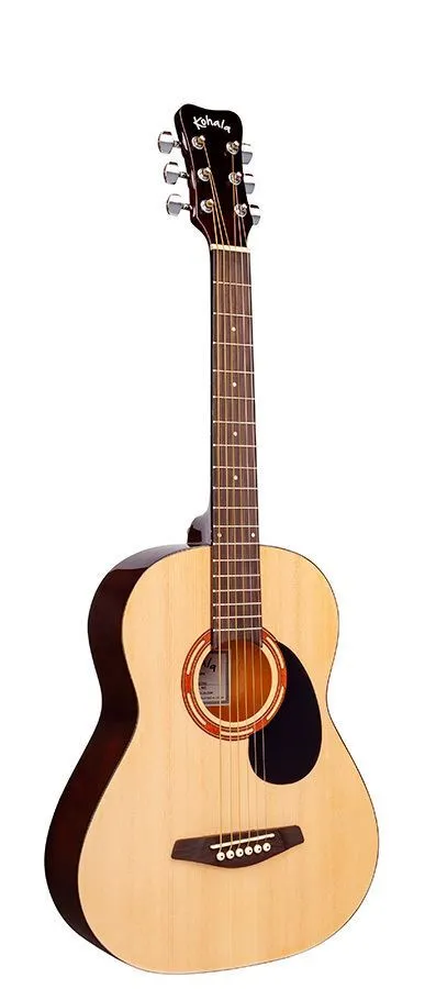 The Kohala KG75S guitar is an all new 3/4 student sized Steel string featuring an Adjustable Truss Rod for maximum playability, Properly Cured Woods and Bracing for increased durability, Special Fret Installation and Pressurized Gluing methods for enhanced performance. Each Kohala guitar comes with a 5mm Padded Gig Bag.