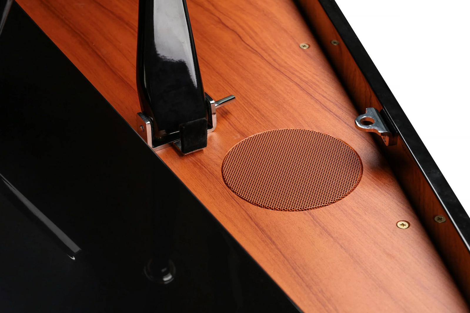 The intuitive user interface features a clear LCD display and provides easy access to all system functions. Elegantly hidden beneath the keyboard, the forward-facing I/O panel makes reaching around the back of the piano a thing of the past.