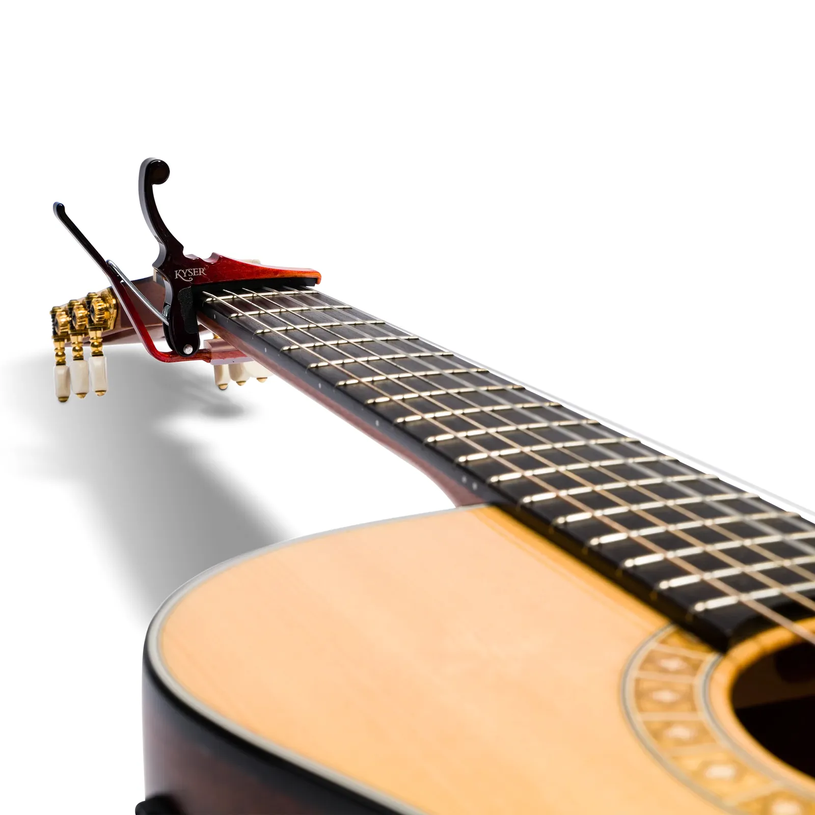 The first. The fastest. The Original. Kyser® Quick-Change® acoustic guitar capos changed everything when they hit the clubs of Deep Ellum, Texas in the 1980s, and they’re still the quickest capos in the West, coveted by the biggest artists on the world's biggest stages. The unique trigger mechanism never misfires. Stick it on whatever fret you’d like and it stays where it should, or leave it on the headstock ‘til you need it. Your Kyser keeps close.