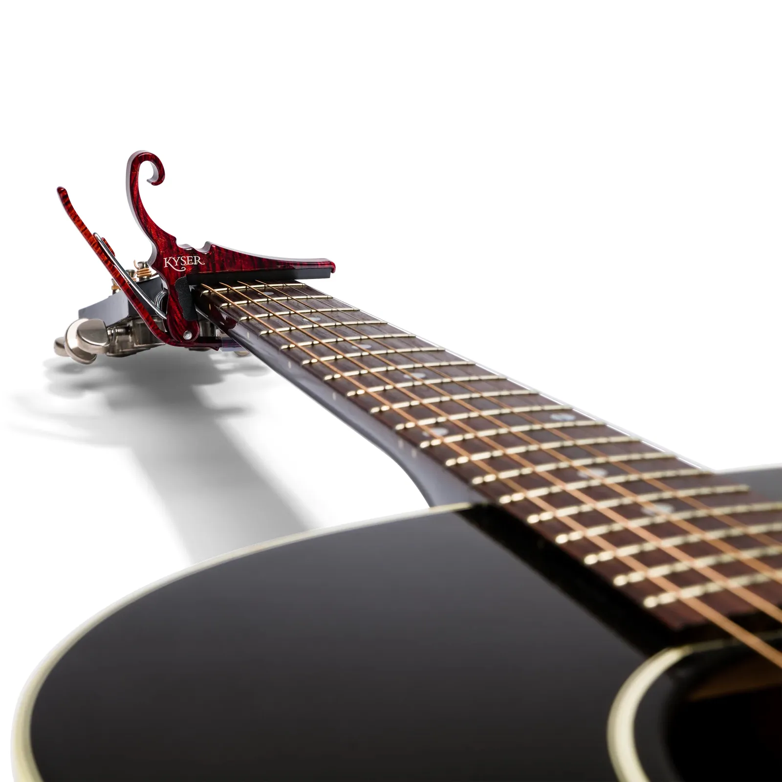 The first. The fastest. The Original. Kyser® Quick-Change® acoustic guitar capos changed everything when they hit the clubs of Deep Ellum, Texas in the 1980s, and they’re still the quickest capos in the West, coveted by the biggest artists on the world's biggest stages. The unique trigger mechanism never misfires. Stick it on whatever fret you’d like and it stays where it should, or leave it on the headstock ‘til you need it. Your Kyser keeps close.