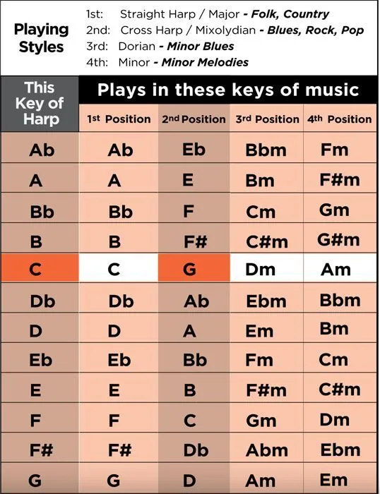 The Major Diatonic harmonica is the most commonly used tuning for playing Blues, Rock, Country Folk & Jazz.