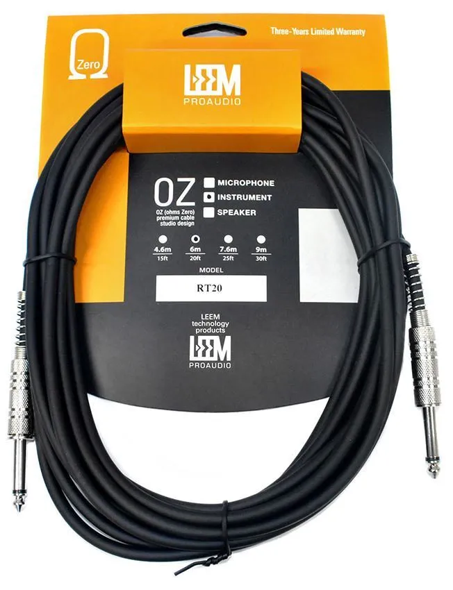 Leem 20ft Instrument Cable (1/4" Straight Plug - 1/4" Straight Plug)