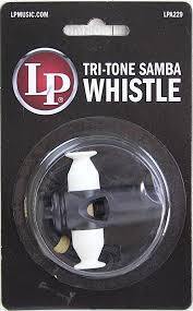 The patented LP Aspire Tri-Tone Samba Whistle has its origins in Brazilian music but has become a standard in today's dance music as well. The samba whistle has 3 distinct, complementary tones that you create by placing your fingers over the side chamber holes in various combinations.