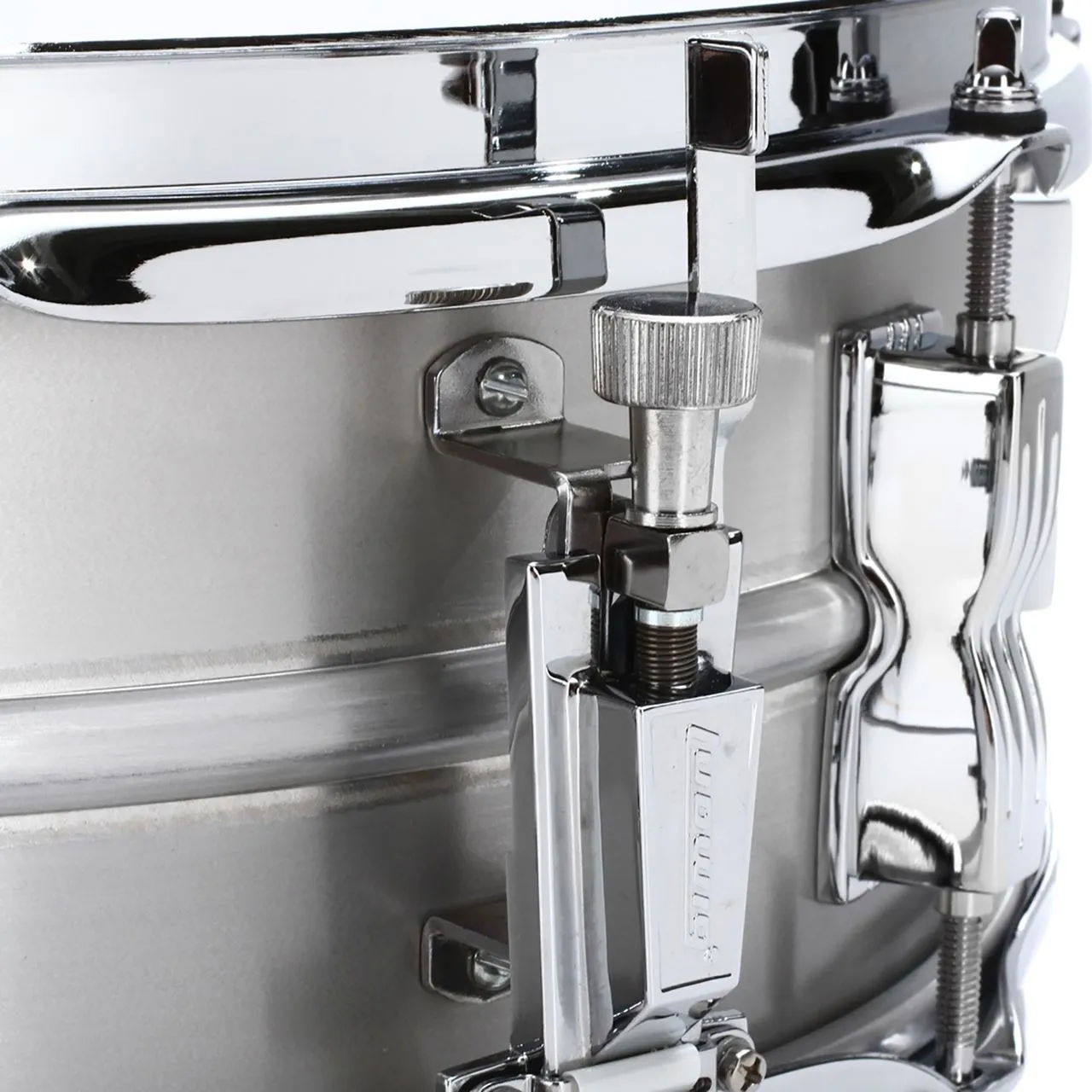 Originally introduced in 1963 as a student drum, the Ludwig Acrolite quickly became the choice of pro players in need of dry, cracking snare tone. Ludwig is proud to re-introduce Acrolite in its original splendor; with a seamless, beaded, brushed-aluminium shell. Made in Monroe, North Carolina, USA.