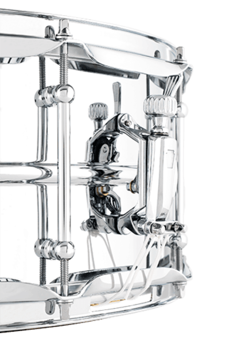 The Ludwig Supralite Snare Drums are designed with a mirrored, polished, 1mm beaded steel shell for bright, cutting attack, while providing a wide mid-range overtone. Fitted with chrome plated brass tube lugs, 2.3 mm chrome plated triple flange hoops, and brass snare wires. All snares feature a new and improved P88I throw-off and P33 butt-plate. Quality and versatility to fit any budget!