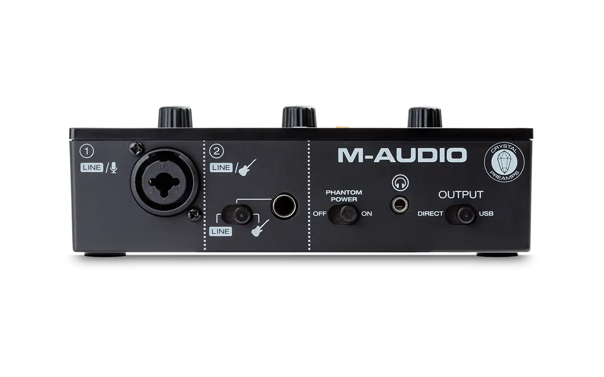 Our engineers designed Crystal Preamps to provide you with a transparent, low-noise preamp that guarantees the best sound from your microphones and captures your performance exactly the way you intended. The M-Track Solo incorporates pristine A/D converters for digital audio with explosive dynamic range that captures every nuance and subtlety of the performance.
