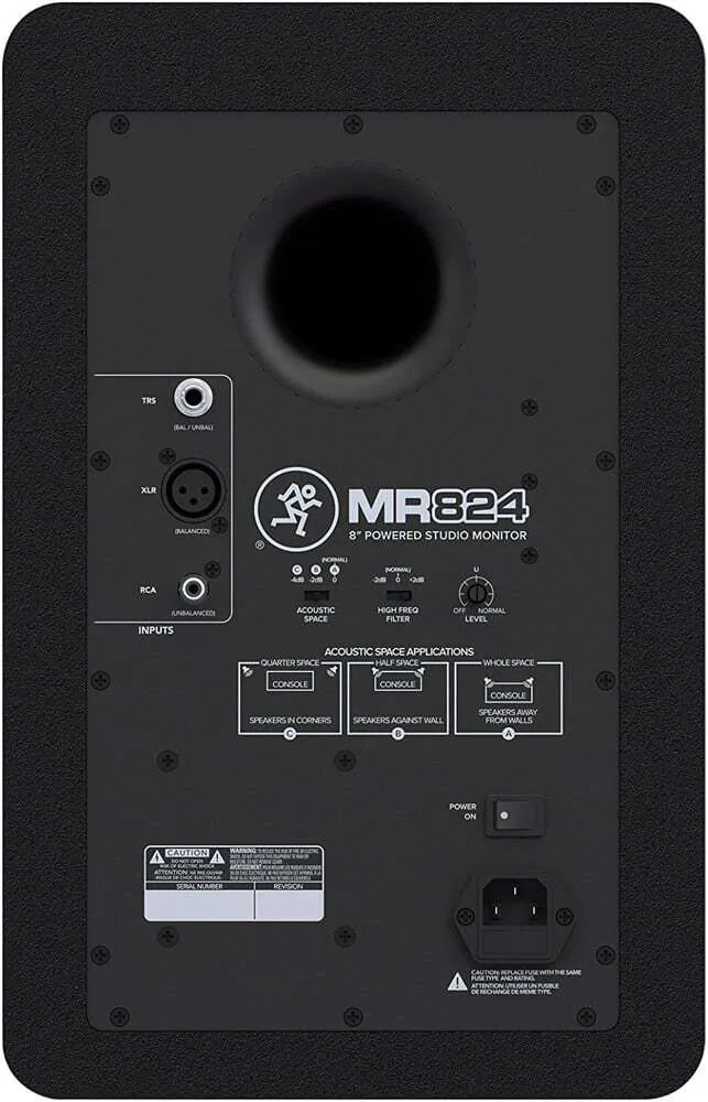 The Mackie MR824 is a near field studio monitor re-designed from the ground up to deliver the very best audio experience for your recordings and tracks. With an all-new design, the MR824 monitors utilize proven technology and acoustic tuning to deliver incredible accuracy and clarity. The logarithmic waveguide provides an ultra-wide listening sweet spot and enhanced stereo imaging while the Acoustic Space Control allows you to adjust the frequency response of the monitor to match your studio. Whether it’s dialogue, hip-hop, rock, and beyond, you can listen with confidence knowing your mix will sound great anywhere.