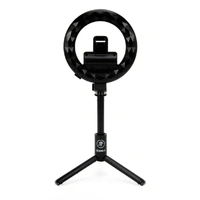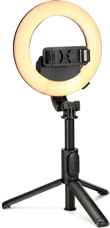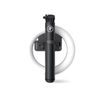Always ensure your content shines with impeccable lighting with the mRING-6 6-inch Battery-Powered Ring Light from Mackie! Your streaming and content creation will benefit from this battery-powered light that you can tote wherever your adventures find you. Go mobile with the included selfie stick or park it at your favorite desk with the included stand; a Bluetooth remote enhances operation by giving you the freedom of extended range and the ability to start your video without needing your phone! The variable brightness guarantees perfect lighting for any situation.