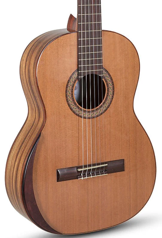 Handcrafted with meticulous attention to detail, the Academia AC40 C features a solid cedar top that produces a warm, full sound, complemented by zebrano back and sides for both auditory and visual pleasure. The inclusion of a factory-fitted armrest enhances playing comfort, ensuring a delightful playing experience.