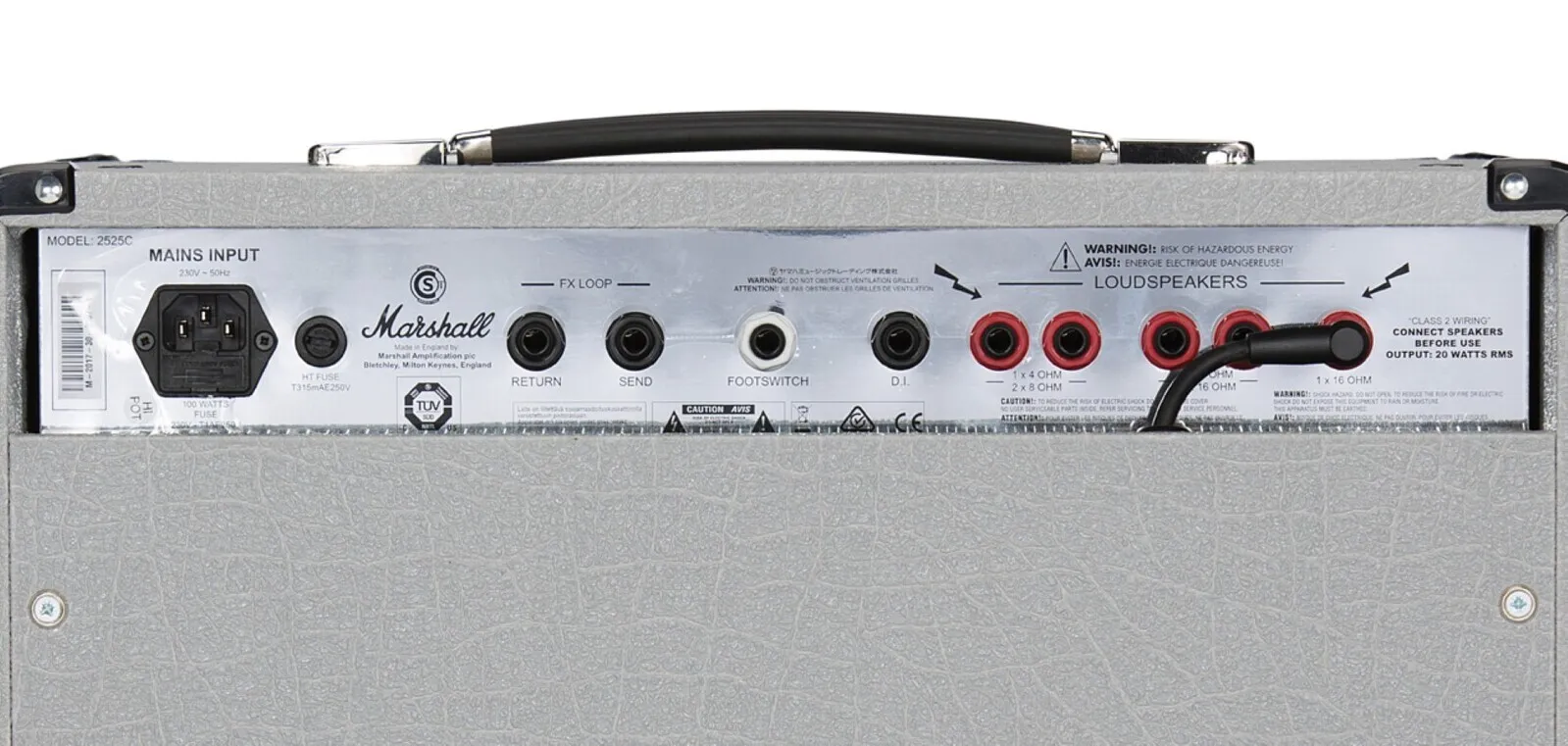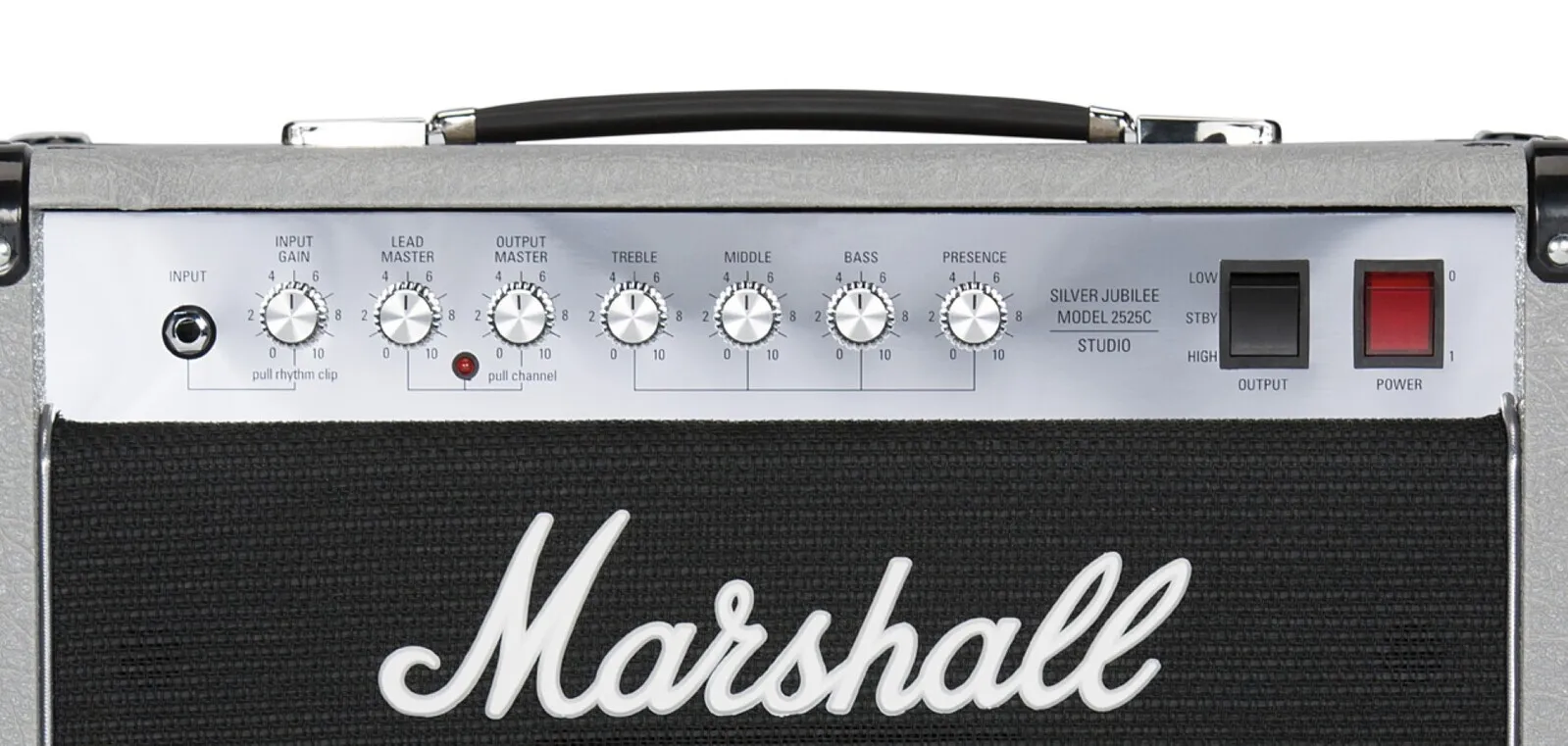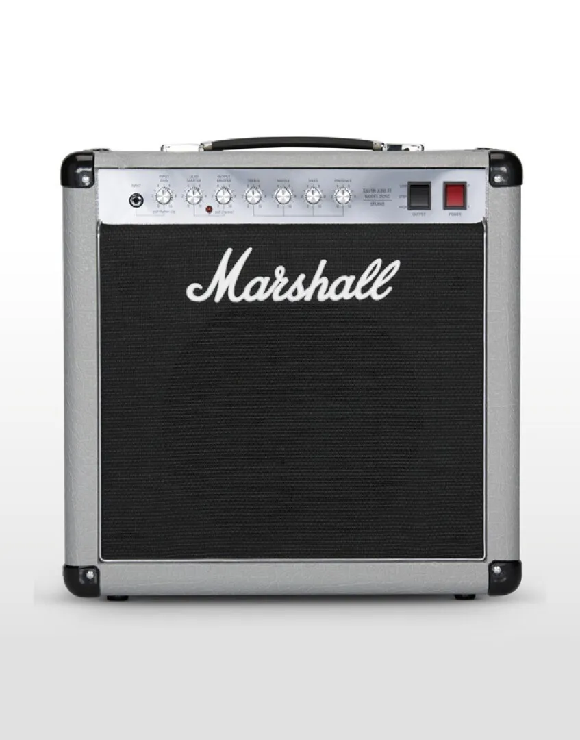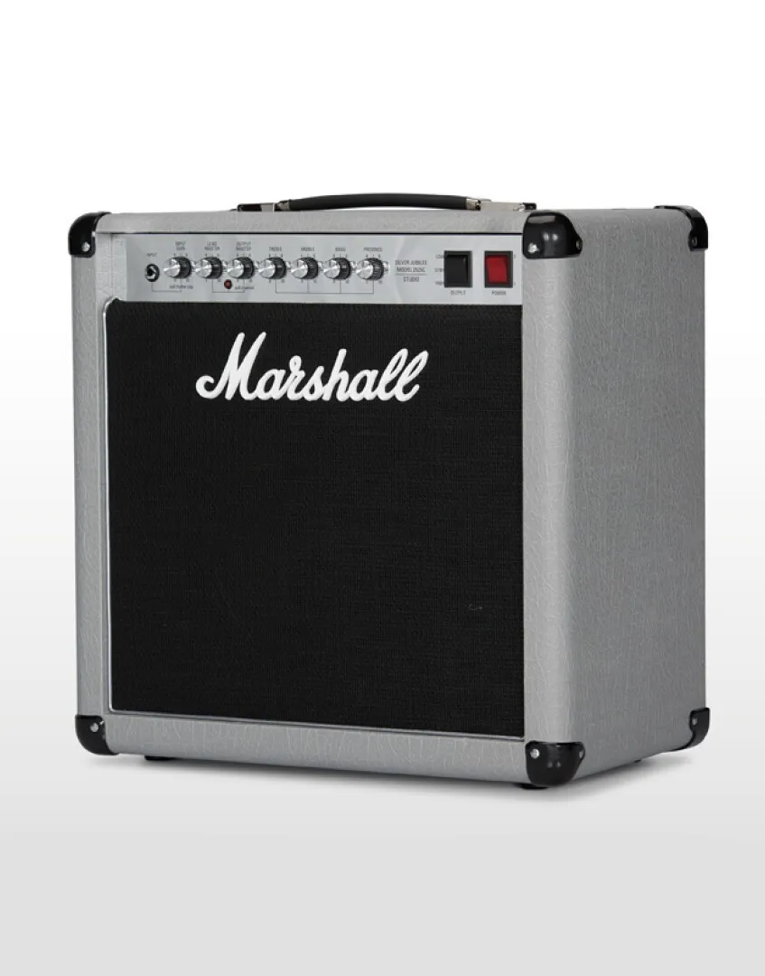 The JCM25/50 Silver Jubilee Series was produced in 1987 to celebrate 25 years of Marshall Amplification and 50 years of Jim Marshall being in the music business. Inspired by this acclaimed series the 20 Watt Mini Jubilee combo and ‘small box’ head combine classic Silver Jubilee preamp tone, features and styling in a lower power, ‘mini’ design. This contemporary ‘mini’ take on the Jubilee Series features: an ECC83 & EL34 valve-set, High/Low output switching, (20 Watt to 5 Watt), FX Loop and independent 4/8/16 Ohm speaker outputs. The 2525C combo is loaded with a single 12” Celestion G12M Greenback speaker. In keeping with classic Jubilee tone, Mini Jubilee features preamp circuitry taken from the 2555X, released in 2015, made using the original diagrams and checked against the original 2555 Silver Jubilee head in the Marshall Museum. The amp also features classic silver vinyl and chrome plated panelling to complete the Jubilee look. The 2525 Mini Jubilee is expertly crafted and is designed, engineered and constructed to the highest possible standards at the Marshall factory in Bletchley, England.