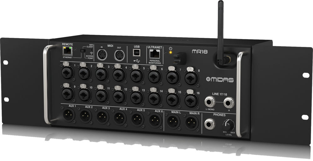 MIDAS MR18 18-Input Digital Mixer for iPad/Android Tablets w/ 16 Midas PRO Preamps