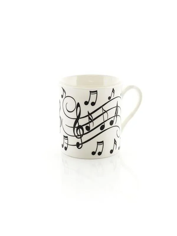 This Little Snoring: Music Notes Mug boasts an eye-catching design featuring black Music Notes against a white background.