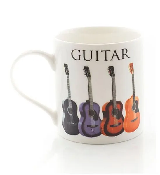 The perfect practical gift for any guitar enthusiast, this music word mug features a bold design incorporating four different acoustic guitars along with the word 'Guitar' written in a classic style.