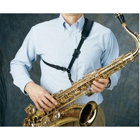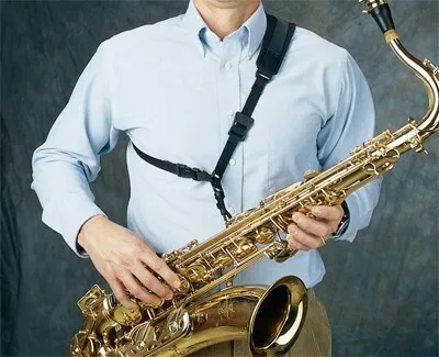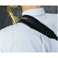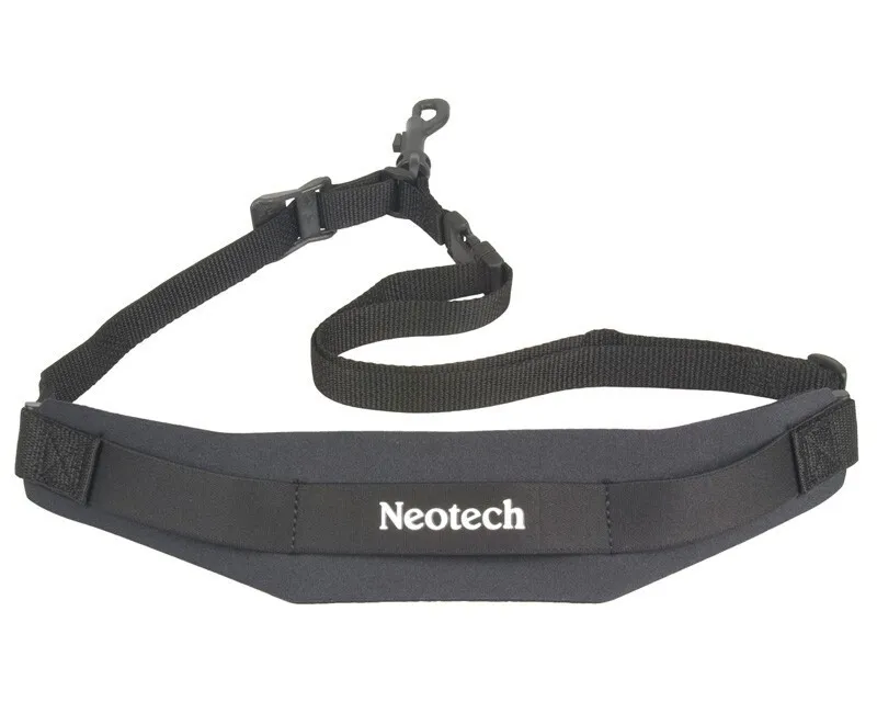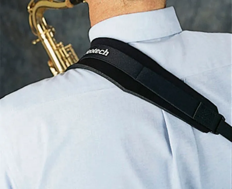 Neotech sling style sax strap. Fits most saxophones and other instruments using our unique swivel hook. Comfort-curve neoprene pad rests on the left shoulder while the strap adjusts across the back and connects in front using a quick disconnect. Fully adjustable. USA made. The Neo Sling™ offers a great alternative to the conventional sax neck strap. The weight of the saxophone is evenly distributed over the shoulder and across the back, which eliminates neck fatigue. Black.